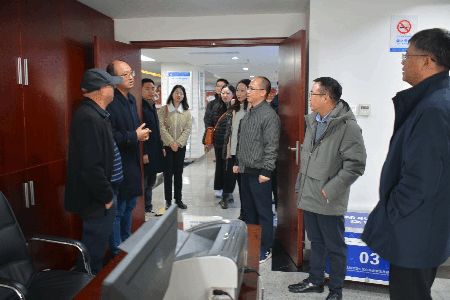 在调研的现场参观环节,中心领导与相关部门负责人向调研团队介绍了公共资源交易的电子化流程,以及专家评标、开标的场所和监控设备,生动展示了公共资源的交易流程。