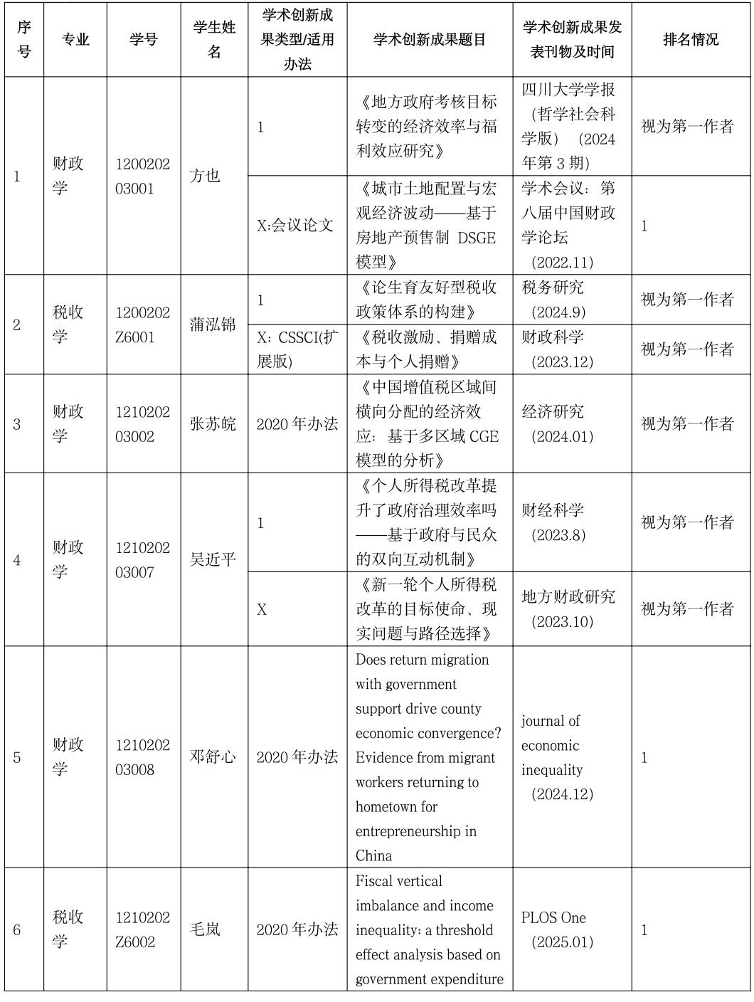 根据太阳成集团tyc234cc学位评定分委员会表决结果,认定方也、蒲泓锦、张苏皖、吴近平、邓舒心、毛岚等6名博士研究生所提交用于申请博士学位的科研成果达到申请学位学术创新成果要求(成果原文详见附件)。现予以公示,公示期为15个工作日,如有异议,请在公示期内提出。