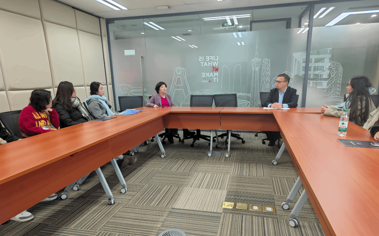 随后,戴德梁行成都公司项目及企业服务部主管席芳女士带领全体师生参观学习成都来福士广场。席芳女士向来访的师生们详述了来福士广场的建设设计过程,这座集写字楼、购物中心、国际高端服务公寓于一体的综合性地标建筑,以其独特的建筑设计和卓越的环保性能,荣获了LEED金级认证、建筑鲁班奖及不动产卓越建设金奖等多项殊荣。她特别指出,来福士广场的三栋主楼分别象征着“过去、现在与未来”,寓意着建筑与城市发展的紧密关联和不断进化的办公理念。席芳女士带领师生们走进了戴德梁行成都分公司,在互动环节,席芳女士与同学们展开了深入讨论,耐心且全面地回应了同学们提出的专业问题。