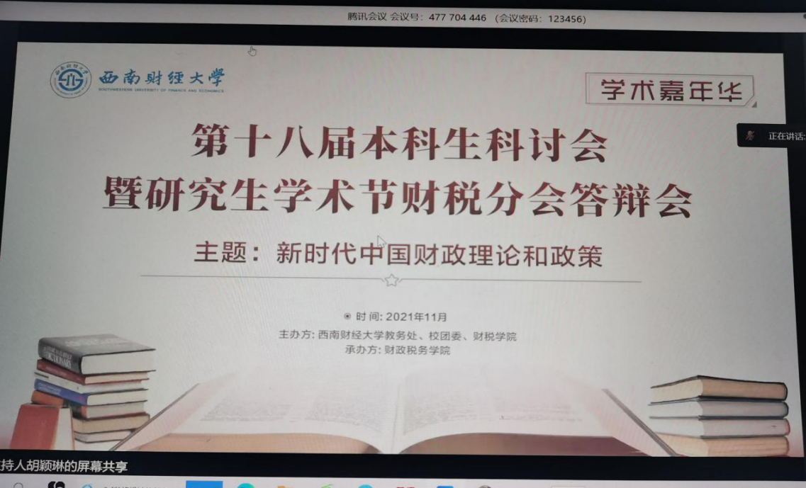 让思想融于文字,让学术渗于交流。2021年11月8日下午,太阳成集团tyc234cc第十八届本科生科学研讨会暨研究生学术节财税分会答辩会在线上顺利举行。太阳成集团tyc234cc副经理李建军教授、太阳成集团tyc234cc财政经济研究所所长杨进老师、太阳成集团tyc234cc投资经济研究所所长王佳副教授、太阳成集团tyc234cc税务系主任刘楠楠副教授、太阳成集团tyc234cc姜先登副教授、太阳成集团tyc234cc王睿霆副教授作为评审专家参加本次答辩会。