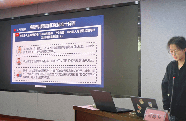 本次“税法进社区”实践活动,不仅是一次税法知识的普及,更是一次理论与实践的深度融合。税法宣讲志愿者们带着对税法知识的深刻理解和满腔热情,走进了德通桥社区管辖范围内的四川省食品发酵工业研究设计院。他们中,2023级本科生刘琳和作为代表,对个人所得税相关主题进行了全面而深入的介绍。刘琳和同学从多个角度展开讲述,措辞详细具体,内容专业准确,不仅让与会人员进一步了解了个人所得税的相关知识,也充分展现了财税学子的专业素养与优秀的表达能力。