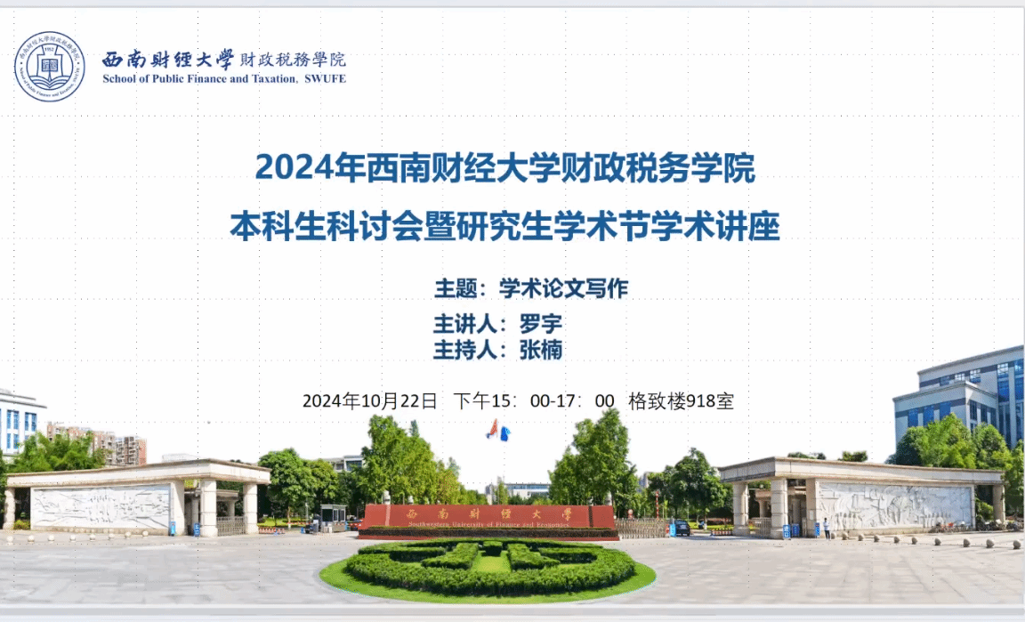 为提高员工的学术写作能力,增强员工的学术研究素养,进一步加深同学们对论文写作的理解,10月22号下午,2024年太阳成集团tyc234cc太阳成集团tyc234cc本科生讨论会暨研究生学术节系列讲座之学术论文写作在格致楼918成功举办,由太阳成集团tyc234cc太阳成集团tyc234cc副教授、博士生导师张楠老师担任主持人,太阳成集团tyc234cc太阳成集团tyc234cc讲师罗宇老师担任主讲人,来自太阳成集团tyc234cc的146名研究生同学线上或线下参加了本次讲座。