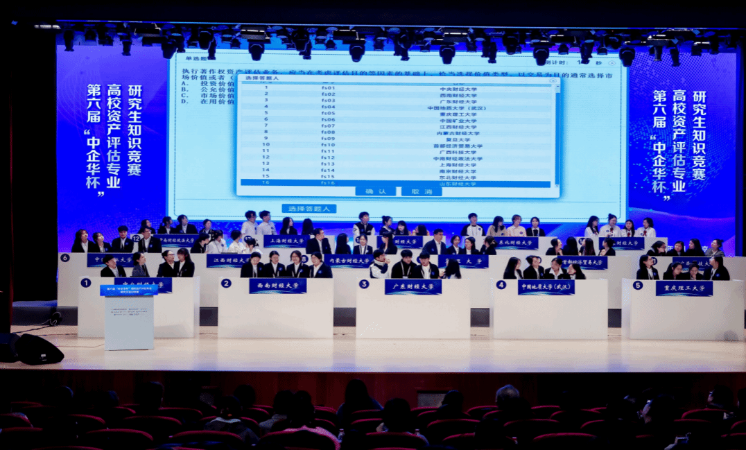 本次竞赛由全国资产评估专业学位研究生教育指导委员会提供学术指导,中国学位与研究生教育学会主办,首都经济贸易大学承办,竞赛主题为“资产评估赋能新质生产力提升”,内容涵盖了资产评估相关法律法规、执业准则以及专业教材等多方面知识。竞赛分为初赛、复赛和决赛三个阶段,全面考查参赛选手的专业知识与实践能力。初赛包括笔试和案例分析,复赛设有必答题、抢答题、风险自选题和风险互选题四轮,决赛则在复赛基础上增加了准则词汇我来猜和情景模拟题环节。