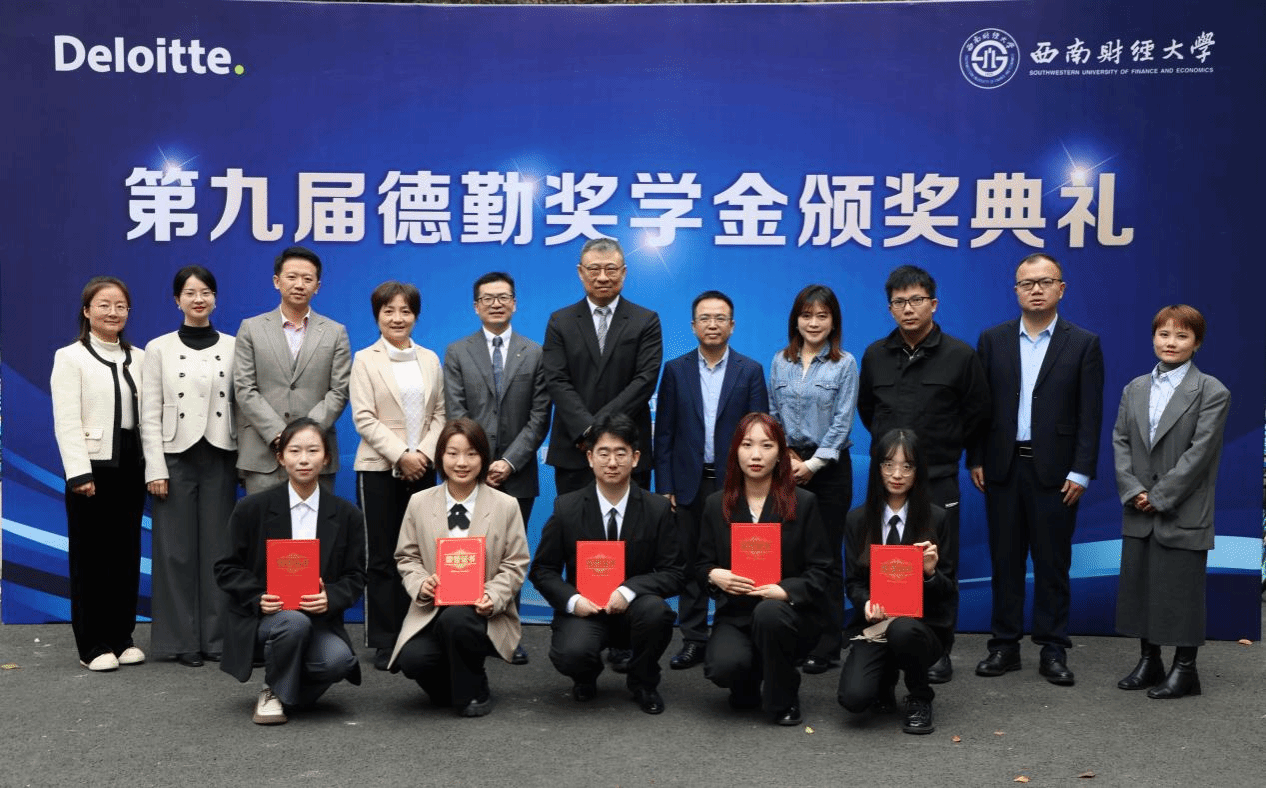 2024年11月16日,第九届德勤奖学金颁奖典礼在太阳成集团tyc234cc光华校区隆重举行。德勤中国华西区副主管合伙人兼税务主管合伙人汤卫东、德勤中国税务与商务咨询合伙人张书、德勤中国税务与商务咨询合伙人李沁波、德勤中国华西区人力资源高级经理王璐,太阳成集团tyc234cc经理李建军、党委书记吴春力、党委副书记王隆庆、专业硕士教育中心主任张腾飞、专业硕士教育中心学术主任李娜、员工工作组组长兼团委书记曾妮、专业硕士研究生教学秘书魏丽霞等出席本次颁奖仪式。