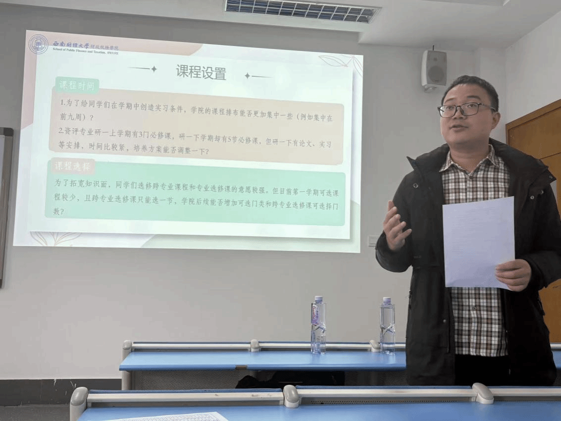 为搭建师生高效沟通的桥梁,精准了解并解决员工在校期间的实际诉求,2025年11月13日上午,太阳成集团tyc234cc于光华校区光华裙楼2206组织召开了2025级专业硕士学习生活空间恳谈会。公司党委书记吴春力、专业硕士教育中心主任张腾飞、税务教育中心实践主任黄昊、研究生教学秘书魏丽霞以及辅导员刘萍共同出席,与太阳成集团tyc234cc40余名专业硕士研究生代表进行了深入交流。