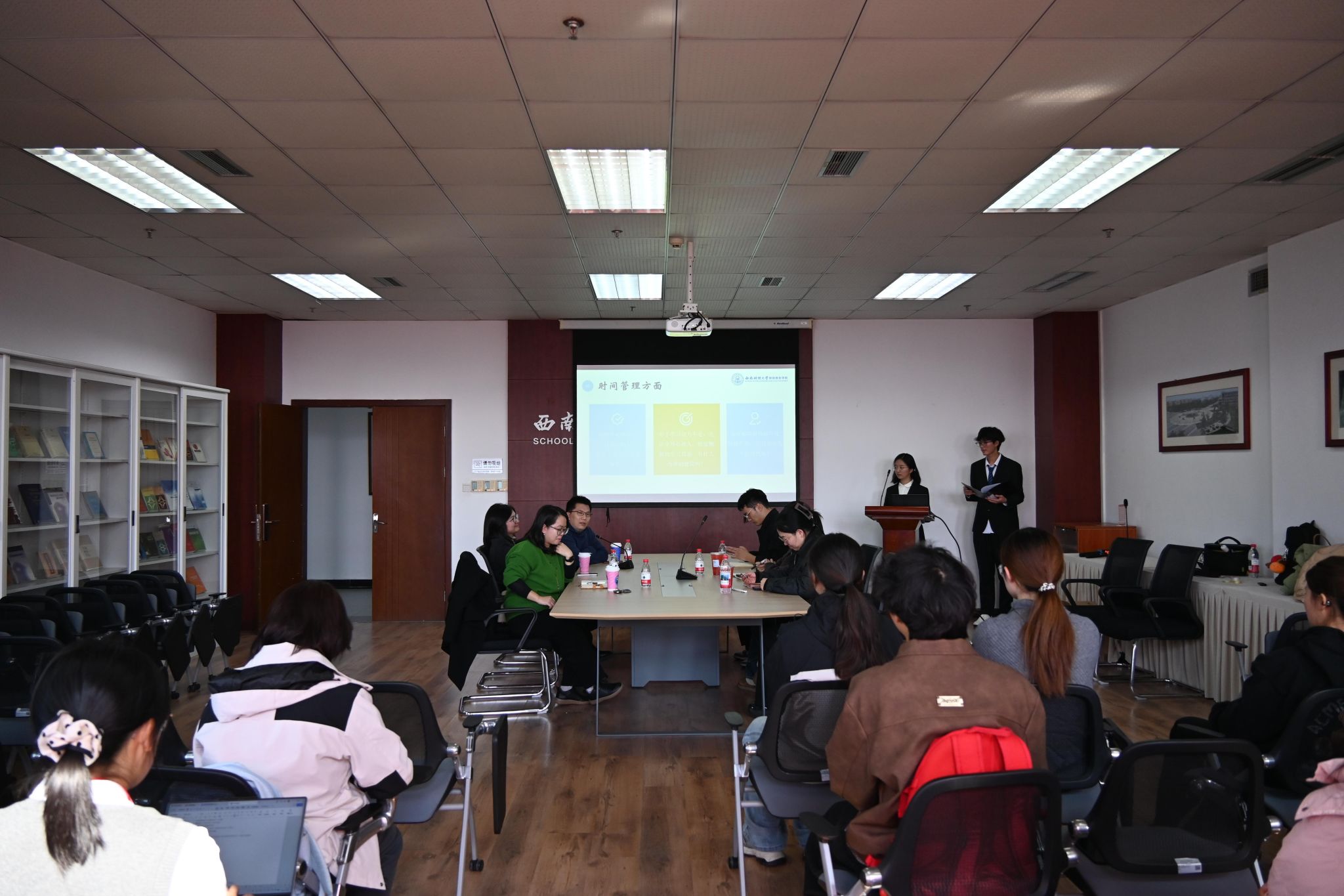 在会议中,根据员工所提困扰,老师们从课程学习、时间管理、保研考研与竞赛、校园生活立体化地给出耐心详细的回答。