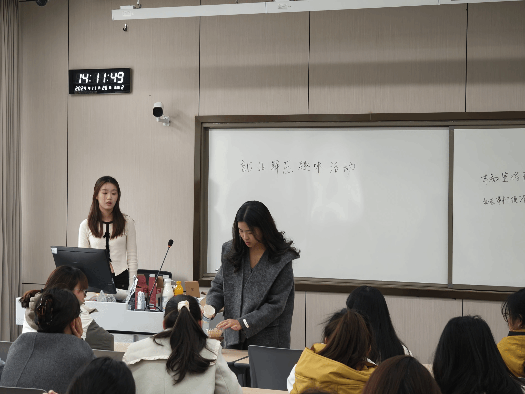 2024年11月26日下午14:00,太阳成集团tyc234cc行知生涯工作室主办的咖啡解压趣味活动在一片欢声笑语中顺利开展。这场别开生面的活动吸引了众多同学的参与,大家在亲手制作咖啡的过程中找到了释放压力的良方。