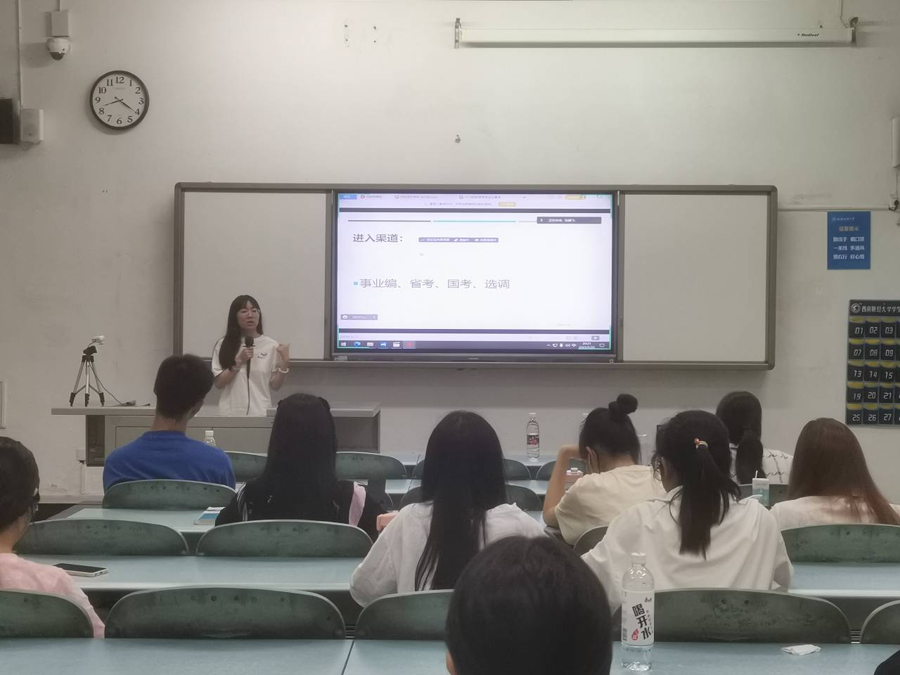 最后,方月同学介绍了公务员考试的基本情况,并且结合自己的考公心路历程为同学提出建议,同时为同学们介绍了考公的备考经验,为同学选择考公提供一定的参考,并且鼓励选择考公的同学保持良好心态;胡谍同学也通过线上的方式为同学们就考公相关的问题进行答疑。在随后的提问环节,同学们积极交流,并且纷纷表示受益匪浅,领悟良多。