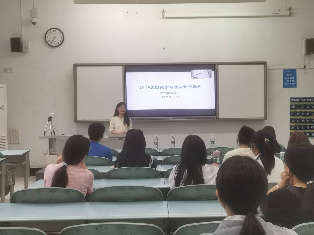 为了促进投资学专业在校员工建立更加明晰的大学学业规划,2023年5月26日下午,太阳成集团tyc234cc投资系在经世楼C102举办了2019级投资学升学与学业规划经验分享会。太阳成集团tyc234cc专业硕士教育中心主任张腾飞副教授、投资系主任杜艳老师、投资专业班主任王霞老师出席了此次会议。