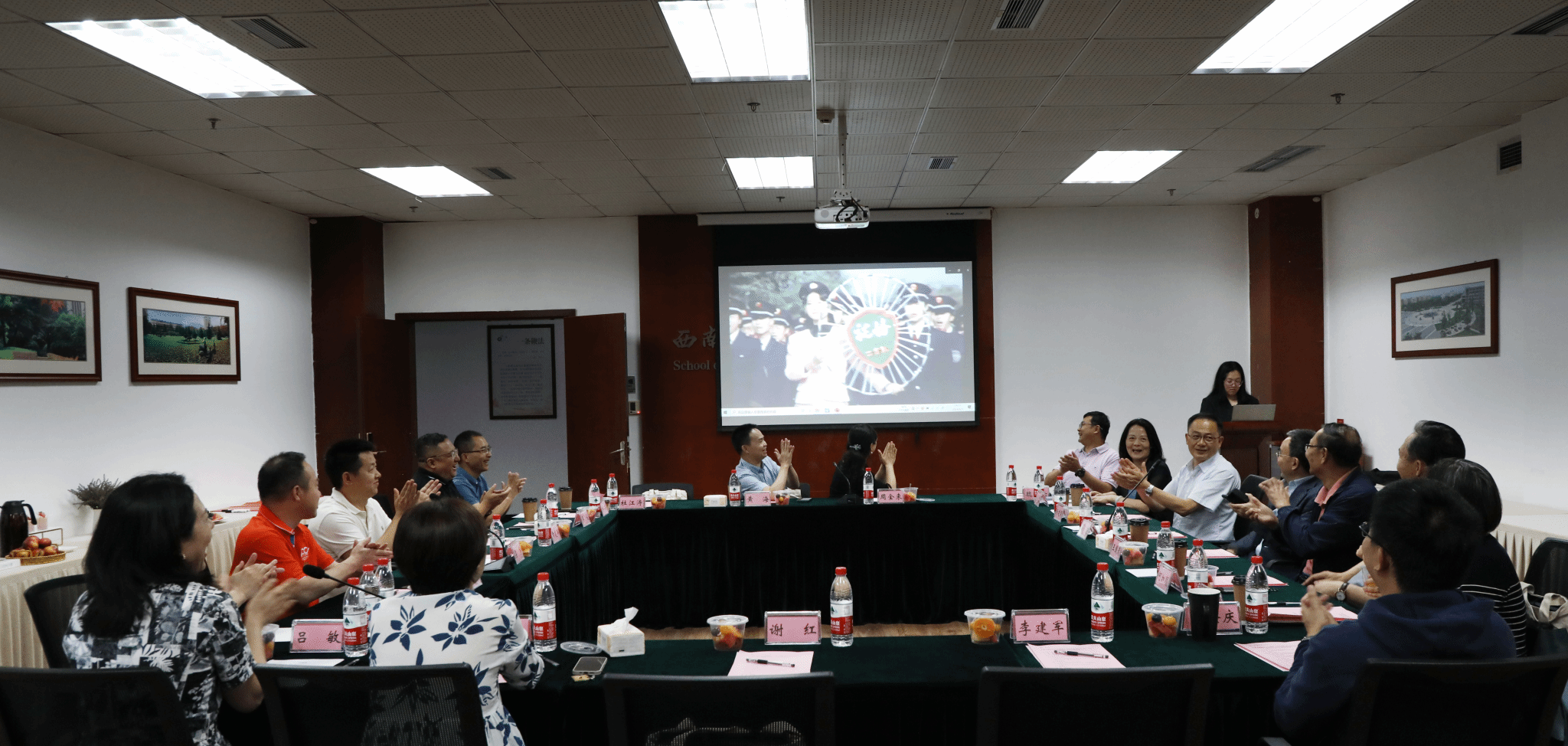 公司党委副书记谢红教授,公司原党委副书记马骁教授,太阳成集团tyc234cc原党总支书记、现四川省教育厅二级巡视员杨建国教授,太阳成集团tyc234cc原经理王国清教授,太阳成集团tyc234cc原经理何加明教授,太阳成集团tyc234cc原经理、现教授委员会主席刘蓉教授,1994级班主任张慧英副教授,全体公司领导及公司1994级10余位员工代表出席座谈。公司副经理吕敏教授主持会议。座谈会在1994级员工的青春纪念视频温馨画面中缓缓开启。