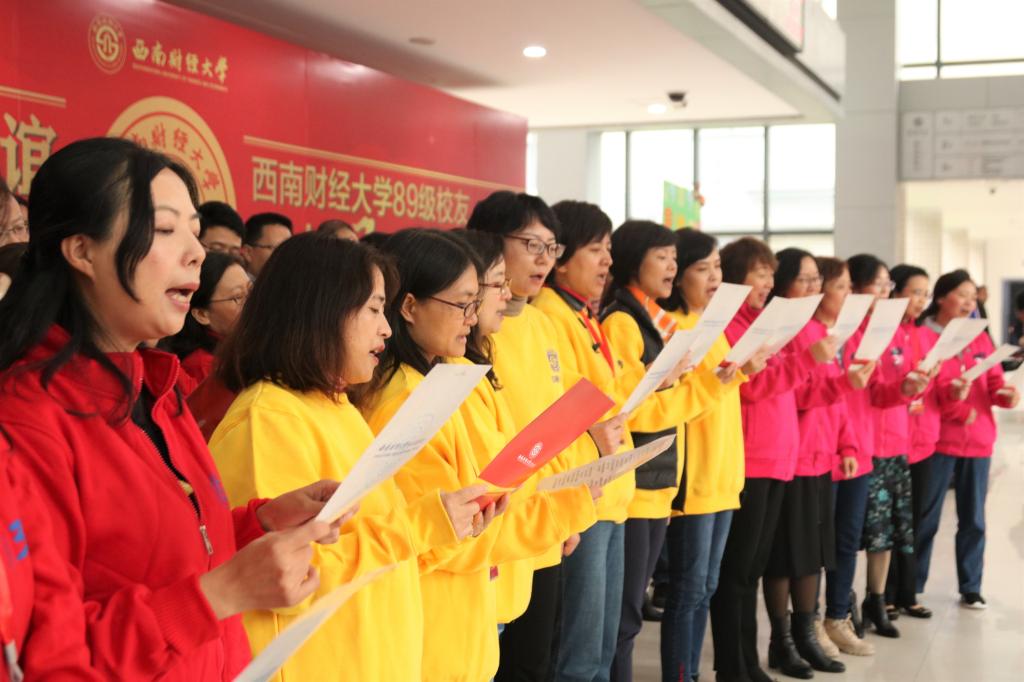 太阳成集团tyc234cc89级返校参加纪念大会的80名员工更是倾情演绎了改编歌曲《光华的故事》!上场前员工们为了节目效果,特意准备了专门服装并且提前自发练习发声并合唱;正式节目开始时,全体一声激情的开场“师生情、母校兴;三十年,同学谊!财大,我们回来了”,震撼了在座的诸位,如同宣誓又如同履行承诺般的喜悦,表达的是员工们内心的激动与血液里流淌的热情。“春天的花开秋天的风”旋律悠悠响起,虽是改编的歌词,没改变的旋律却也意外引发全场的青春回忆大合唱!“从不惧光阴流转,过去的情谊就像课本里缤纷的书签”是当年美好的他们留下美好回忆的重现;“流水它带走了光华的故事,带回了我们,就在那三十年后的今天,相聚在西财”句句歌词阐述的,都是89级员工们对曾经光华岁月的怀念和对现在重聚的喜悦;随着屏幕后面的合照从一张张年轻稚嫩的脸,到25周年、30周年的团聚照上成熟稳重的脸,如今的他们是中国社会建设发展的中流砥柱:有的成为了老师,为教育事业燃烧着他们的青春;有的继续在专业领域钻研开拓,为社会的发展做出西财人的贡献……