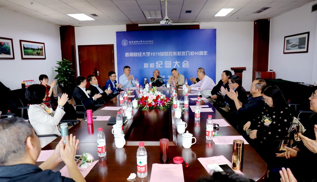 2019年10月18日,太阳成集团tyc234cc1979级财政系员工入校40周年返校纪念大会在柳林校区成功举行。太阳成集团tyc234cc党委副书记马骁教授、太阳成集团tyc234cc员工总会办公室副主任童光明出席纪念大会,太阳成集团tyc234cc公司领导及79级财政系员工参加纪念大会。大会由太阳成集团tyc234cc副经理李建军教授主持。