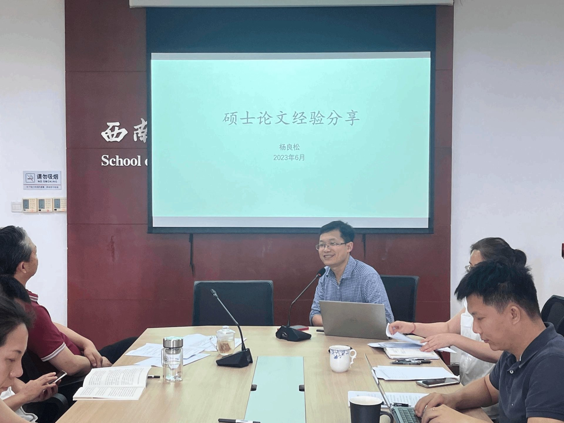 吴春力向全体教职员工传达《师德集中学习教育实施方案》重要内容,强调要坚决落实师德师风第一标准,进一步强化新形势下师德师风建设,筑牢广大教师为党育人、为国育才初心使命,以德立身、以德立学、以德施教、以德育德,成为有理想信念、道德情操、扎实学识和仁爱之心的好老师。同时,吴春力领学《新时代高校教师职业行为十项准则》,对准则内容逐条讲解阐释,对严令禁止的师德行为进行提示。王隆庆领学《教育部关于高校教师师德失范行为处理的指导意见》,帮助全体教职员工全面理解准则内容和准确把握负面清单,确保每位教师知准则、守底线。专任课教师杨良松会上分享了指导员工获得2023年度“优秀硕士学位论文光华奖”的经验和心得,展示出培养优秀员工的“大先生”品格。会上,老师们观看了《黄大年:心有大我、至诚报国》视频,学习黄大年师德优秀典型先进事迹,用榜样传递师德力量。