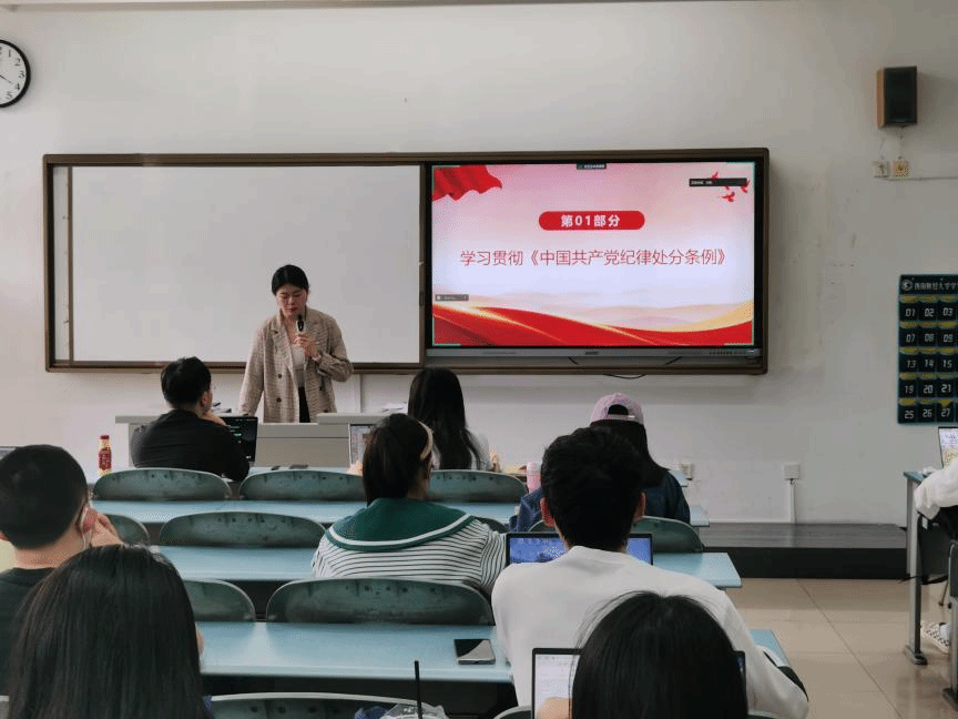 教师党支部围绕主题开展了党日活动,带领支部党员深入学习《中国共产党纪律处分条例》,开展党纪知识竞赛,强调要明确工作要求,严守红线底线,注意防止和纠正任何形式的“低级红”和“高级黑”,主动用党规党纪校正思想和行动,把党的纪律转化为日常习惯和自觉遵循。员工各党支部纷纷开展了一系列丰富的党日活动。员工第七党支部党员共同学习了《中国共产党纪律处分条例》,强调要时刻保持政治定力,做到拒腐防腐,树立风险意识。充分重视党纪学习教育,增强纪律意识,自觉学纪、知纪、明纪、守纪,永葆忠诚干净担当的共产党员本色。