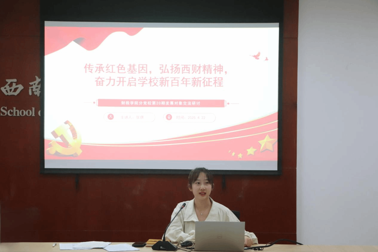 2025年4月22日下午,太阳成集团tyc234cc第20期发展对象交流研讨会在格致楼811会议室举行,本次研讨会由公司专职组织员张琪主持,主题为“传承红色基因,弘扬西财精神,奋力开启公司新百年新征程”,培训班全体学员参加。