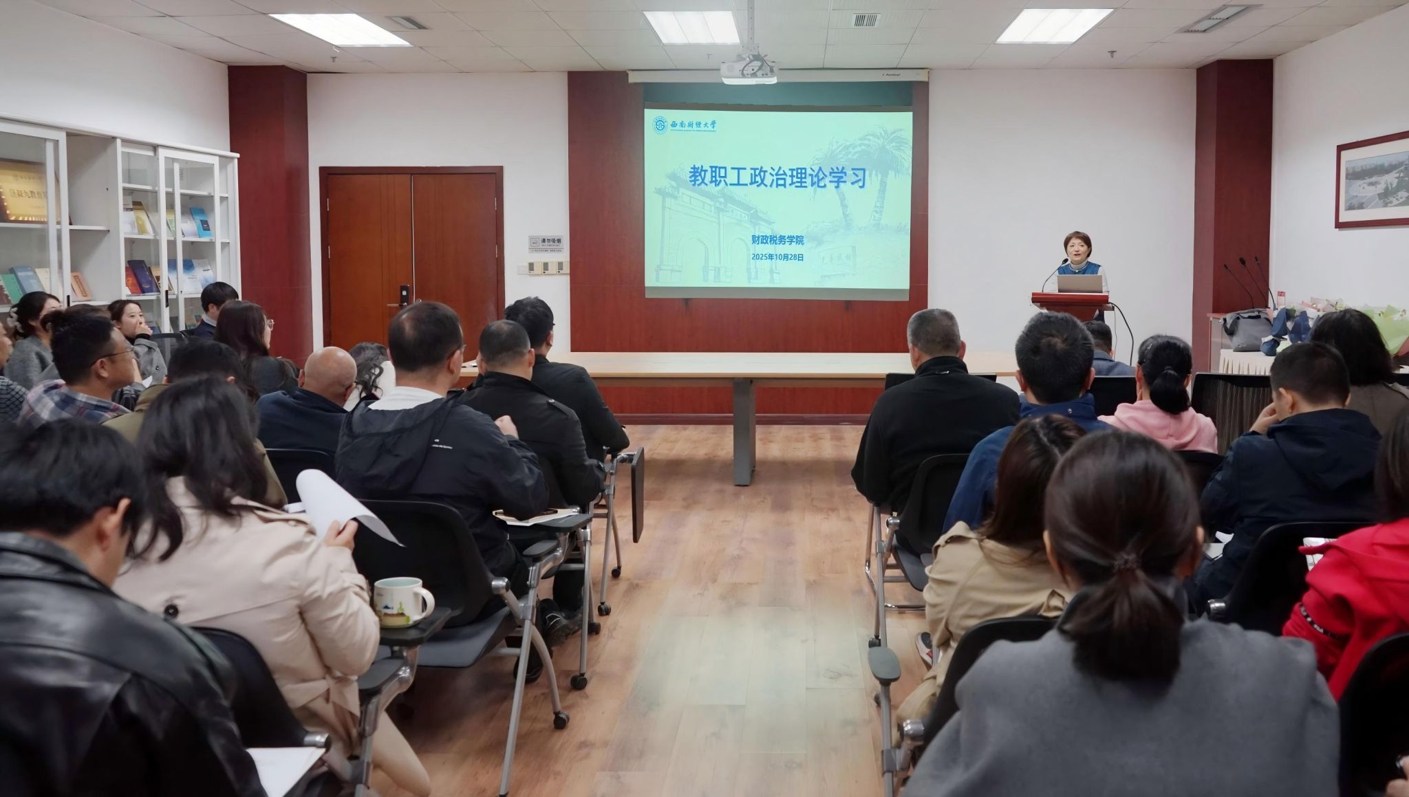 吴春力带领全体教职工学习党的二十届四中全会精神,系统解读全会精神要点,阐述“十五五”时期主要目标及2035年远景目标,强调要准确把握会议精神实质,抓好贯彻落实。同时,吴春力领学习近平文章《用中长期规划指导经济社会发展是我们党治国理政的一种重要方式》,引导教职工深刻领会党治国理政的科学方法与战略思维。