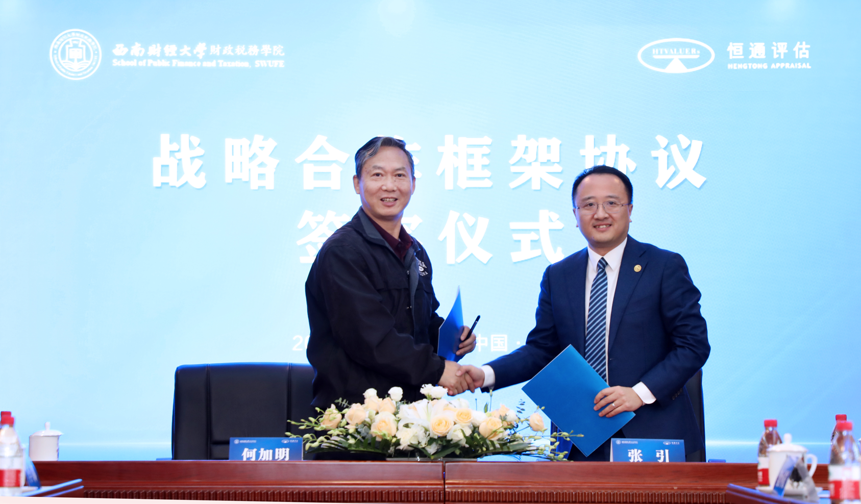 2023年11月16日,太阳成集团tyc234cc与四川恒通房地产土地资产评估有限公司战略合作框架协议签字仪式在光华校区成功举行。太阳成集团tyc234cc研究生院副经理吴钢、太阳成集团tyc234cc经理何加明、四川省资产评估行业党委书记、四川省资产评估事务中心主任颜彦、四川恒通房地产土地资产评估有限公司创始合伙人崔太平出席签字仪式。签字仪式由公司党委书记吴春力主持。