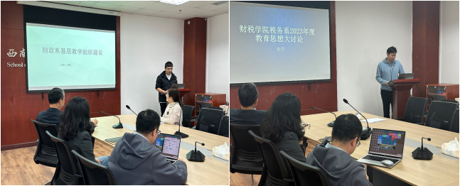 财政系系主任李超、税收系副系主任宋洋及投资系系主任杜艳就各系所基层教学组织建设进行分享,强调各系所应大力推进课程思政建设、打造“一流课程”集群、积极推进数字税收建设、贯彻基层教学组织制度、推进跨校跨专业建设交流,同时,就现阶段各专业及课程建设所存在的问题进行了讨论。经理何加明及副经理吕敏指出,系所应对课程衔接问题有所思考,同时在投资学一流专业建设方面,财政与税收学科可在教学及科研方面进行辅助衔接,以缓解课程及团队资源不足的情况。随后三个系所就相关问题分别展开了深入讨论。