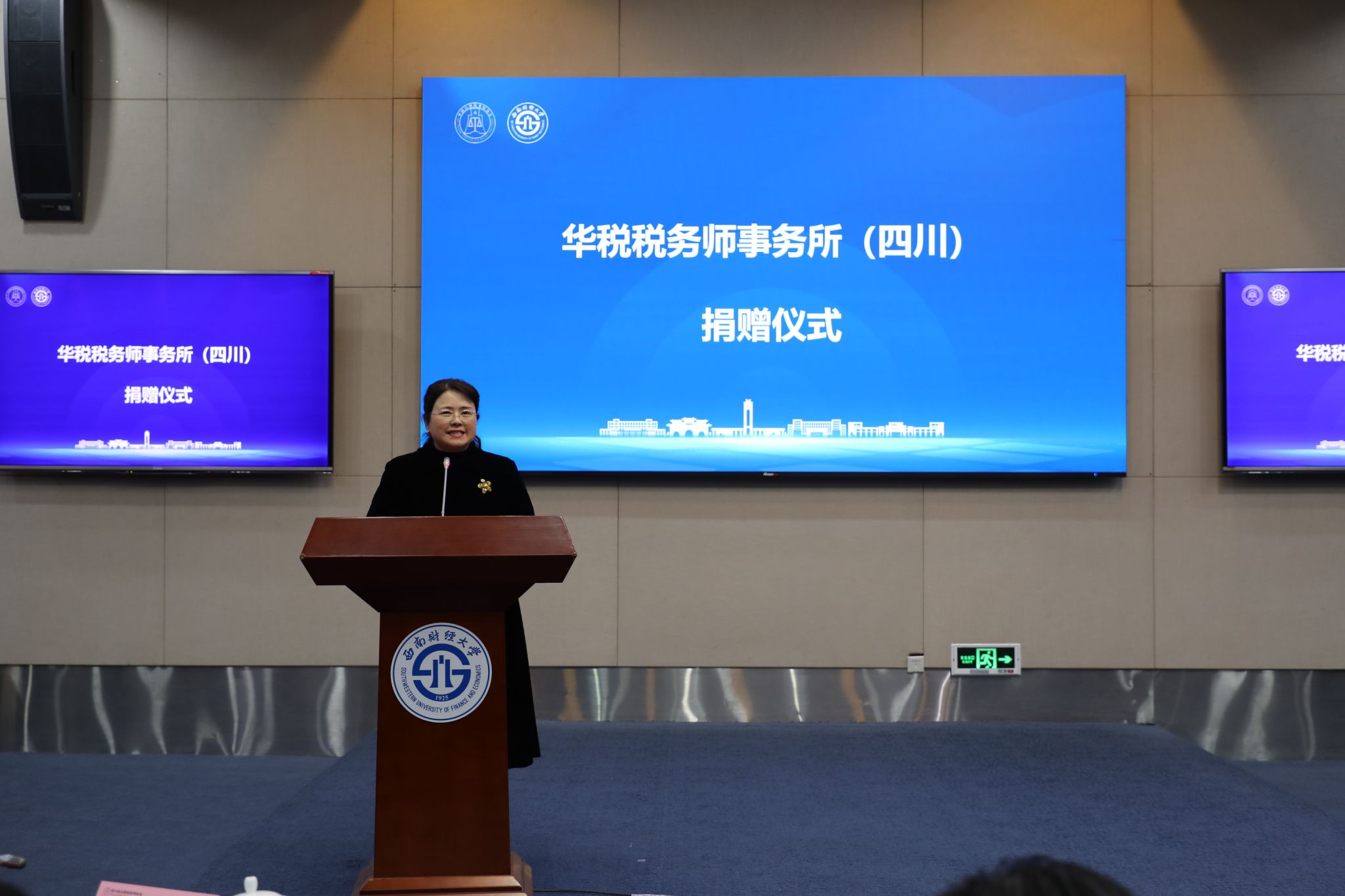 公司党委书记吴春力主持签约仪式,经理李建军、四川省注册税务师协会副会长徐勇代表双方签署合作协议,为“西财财税实践教育基地”揭牌。其后,举行四川华税税务师事务所捐赠仪式。孙苹致捐赠辞,深情回顾了求学和创业经历,衷心感谢和祝福母校,希望继续为母校团队建设和人才培养贡献力量。