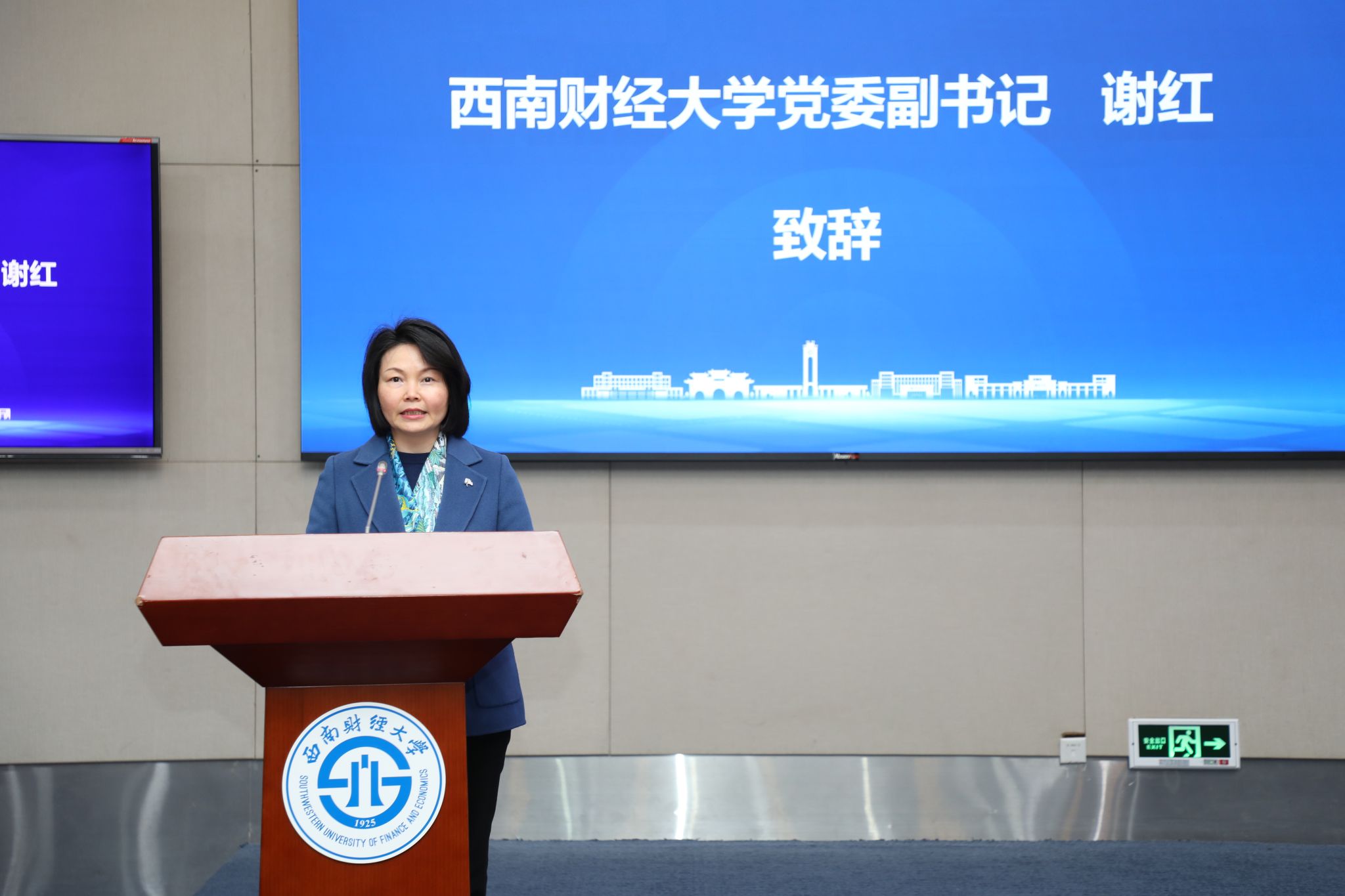 公司党委副书记谢红,四川省注册税务师协会会长董光晖,副会长兼秘书长徐勇,副会长、四川华税税务师事务所董事长孙苹出席活动。谢红代表公司热烈欢迎参会嘉宾,对四川省注册税务师协会、四川华税税务师事务所长期以来的支持致以诚挚感谢。她介绍了公司历史沿革、办学特色和改革发展情况,回顾了公司与省市税务局开展税收宣传月活动情况,勉励西财学子在税收普法宣传中锤炼品格、树牢法治观念、磨练技能。她希望双方发挥各自优势,打造“公司+协会+企业”协同育人新标杆,开启合作新篇章。