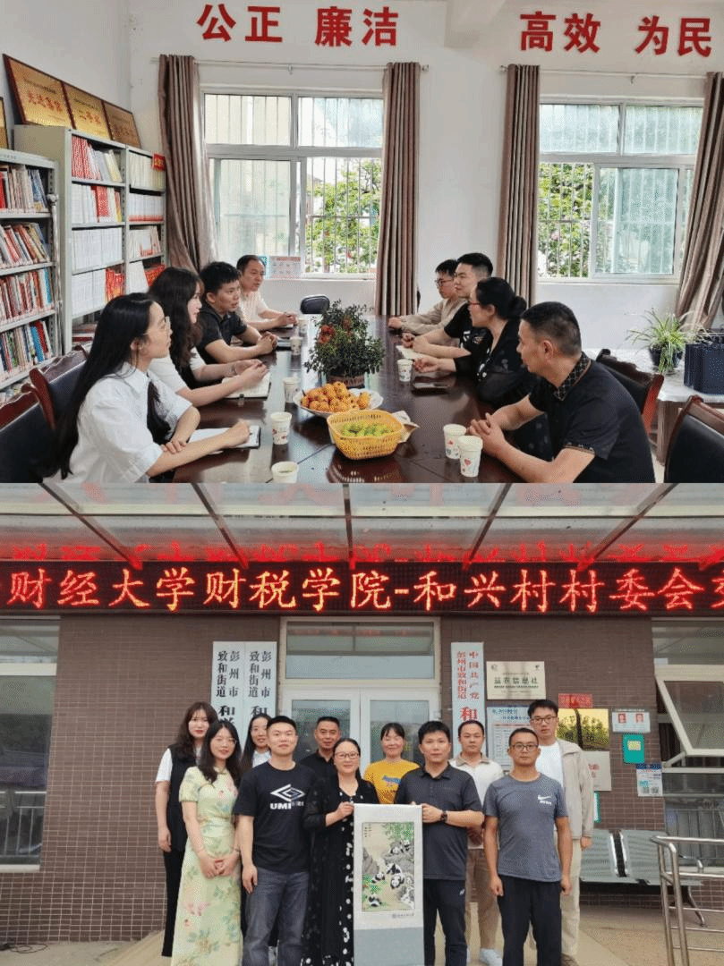 调研组来到彭州市致和街道和兴村党群服务中心,与和兴村村委会工作人员开展交流座谈。村委会汤书记首先对和兴村基本情况进行简要介绍,着重讲述了当前部分重点工作的开展状况,以及驻村选调生的工作情况。太阳成集团tyc234cc员工、驻和兴村选调生伍西贝与驻濛阳街道泉沟村选调生谢春雨两位同志讲述了个人的驻村工作情况,分享了对于选调生工作的认识和驻村工作经验。调研组的师生也就和兴村村务工作、选调生职业发展和员工能力培养等相关问题进行了交流。