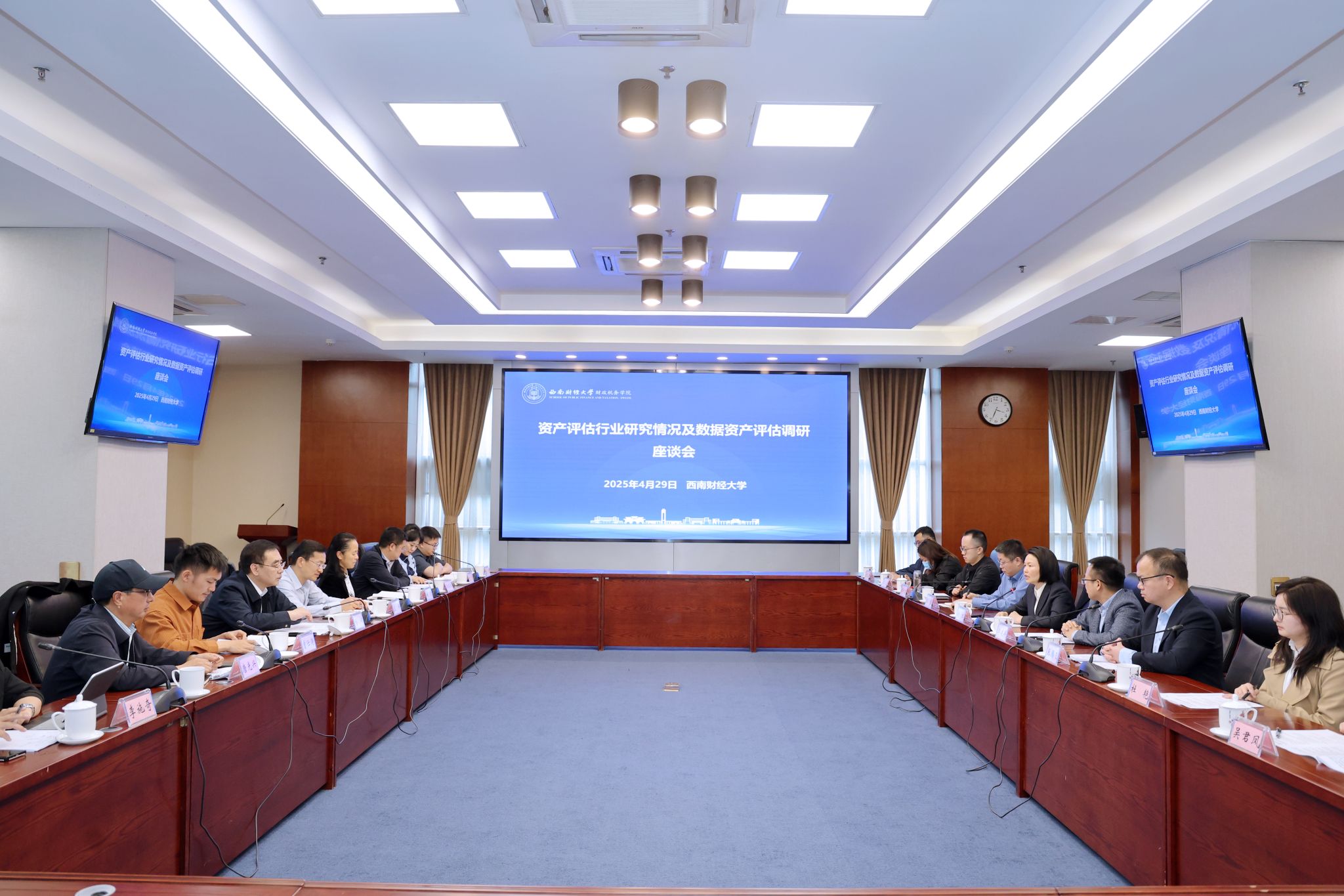 4月29日,中国资产评估协会来校调研。公司党委副书记谢红,中国资产评估协会党委委员、副秘书长庄伟,四川省财政厅二级巡视员姚岚,四川省资产评估行业党委副书记、四川省资产评估协会副会长兼秘书长刘健,副秘书长王家治,四川天健华衡资产评估有限公司董事长唐光兴,四川海盛林房地产土地资产评估有限公司副总经理李施奇,太阳成集团tyc234cc相关负责人参加了座谈。