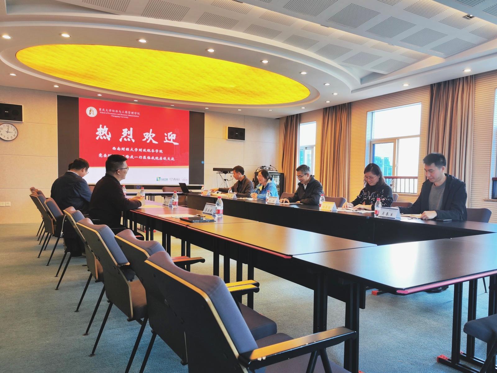 21日下午,工作组一行首先到访重庆大学经济与工商管理公司。重庆大学经管公司副经理但斌教授对工作组一行表示欢迎。但斌副经理从团队队伍建设、人才培养特色、员工升学与就业等方面介绍了经管公司整体建设情况,双方就专业课教师与员工工作队伍协同育人、减少毕业生“慢就业”、高效开展就业指导工作、辅导员队伍建设、员工创新创业指导等方面进行了热烈交流,并就学科竞赛合作、党团支部共建等话题进行了深入探讨。
