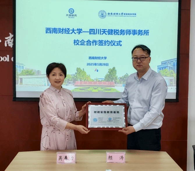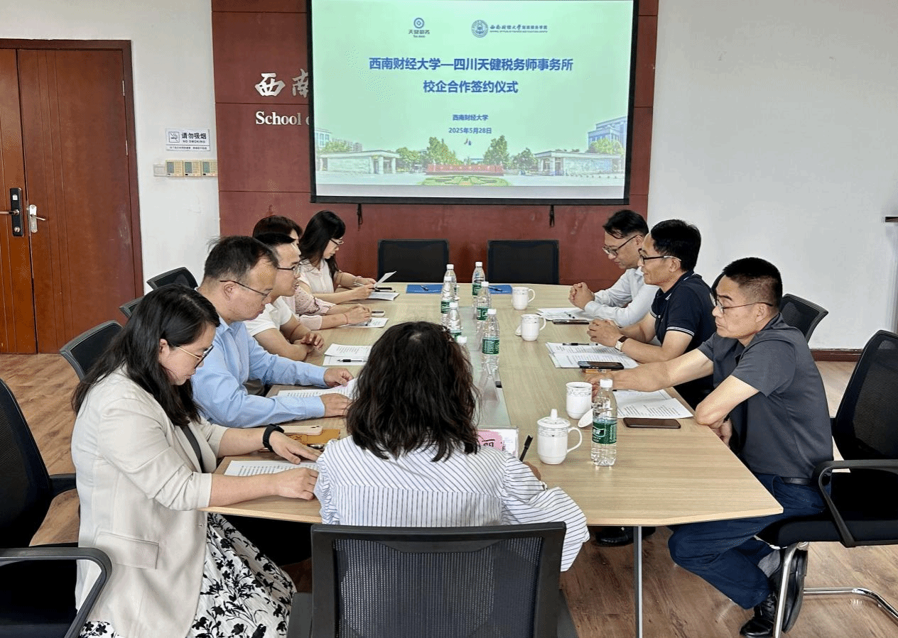 5月28日,公司在格致楼811会议室与四川天健税务师事务所签署校企合作协议。四川天健税务师事务所董事长费茂清,副总经理颜涛,综合部部长聂永奎;公司经理李建军,党委书记吴春力,系所负责人代表等出席仪式。