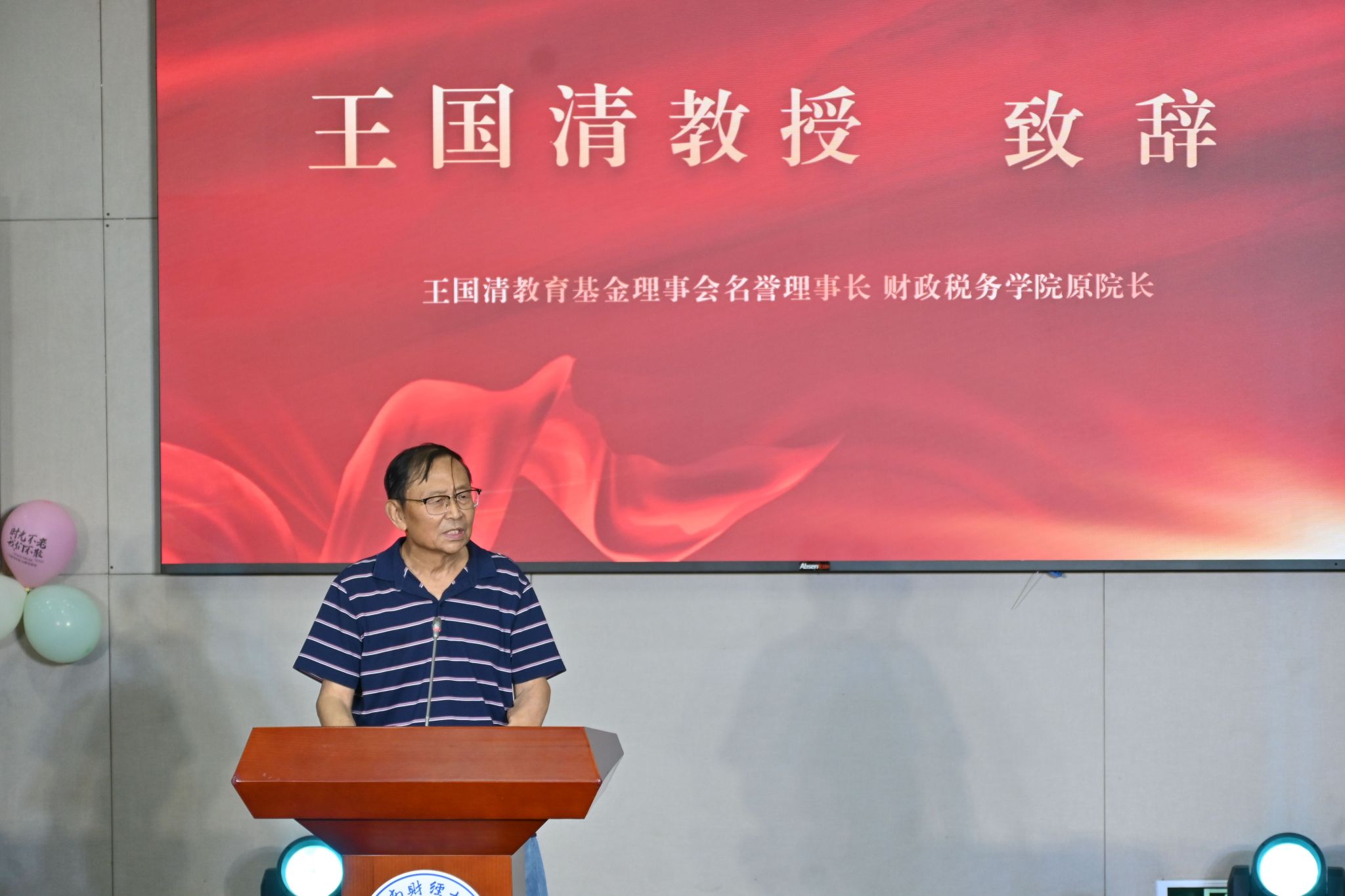 王国清教授发表了热情洋溢的讲话。他勉励财税学子努力夯实专业基础,提升自主学习能力,凝聚学科自信力量,善用联想创新思维,全面提升综合素质,积极投身理论实践,以青春之担当主动服务“国之大者”。
