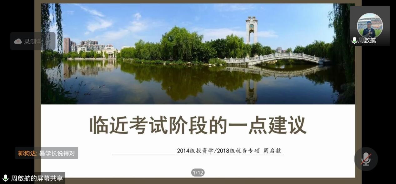 在本次线上活动中,吴红伯学长严谨认真,周启航学长诙谐幽默,两位学长传授考公经验,分享一路备考的心路历程,在答疑环节耐心解答同学们的问题,并在最后祝愿正在计划或者备考,有志于走进政府机关,投身国家建设的同学能够如愿以偿。