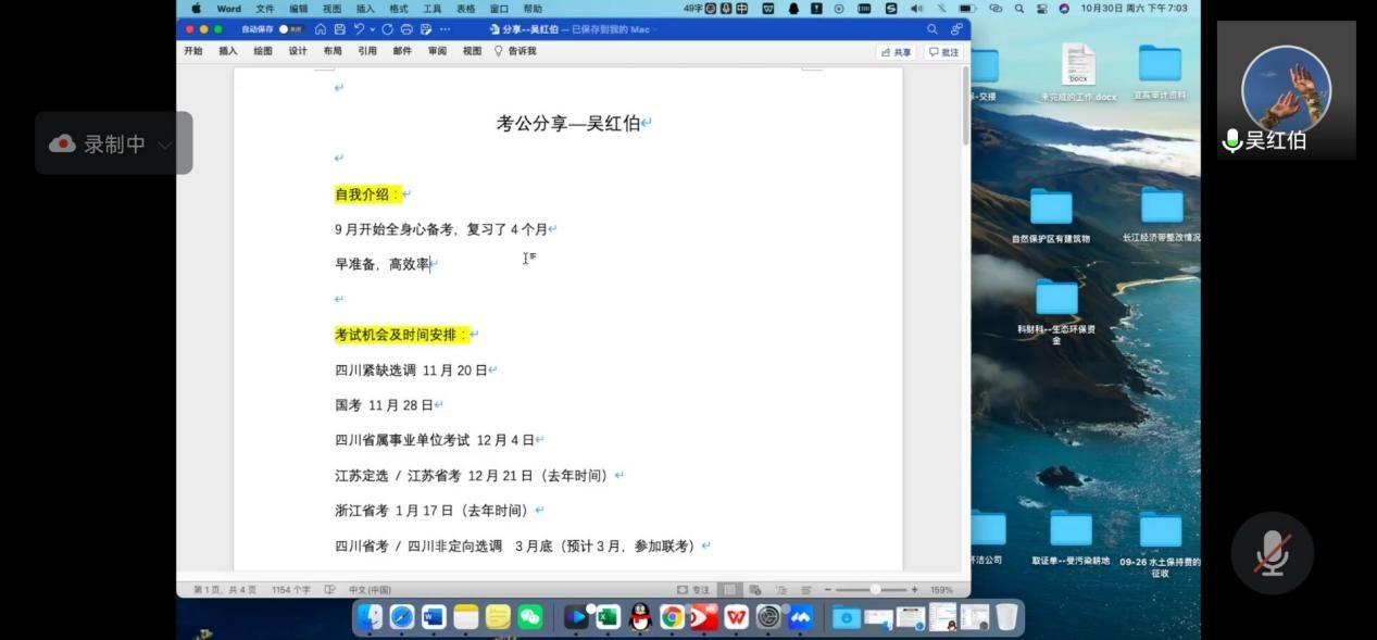 为助力毕业生,提升就业率, 10月30日晚,财税成功举办生涯咖啡馆“考公干货分享”——备考指导在线专场分享会。本次交流会邀请到2018级优秀毕业生吴红伯和周启航作为讲座嘉宾,为意向考公的同学分享了择业及就业方面的宝贵经验。