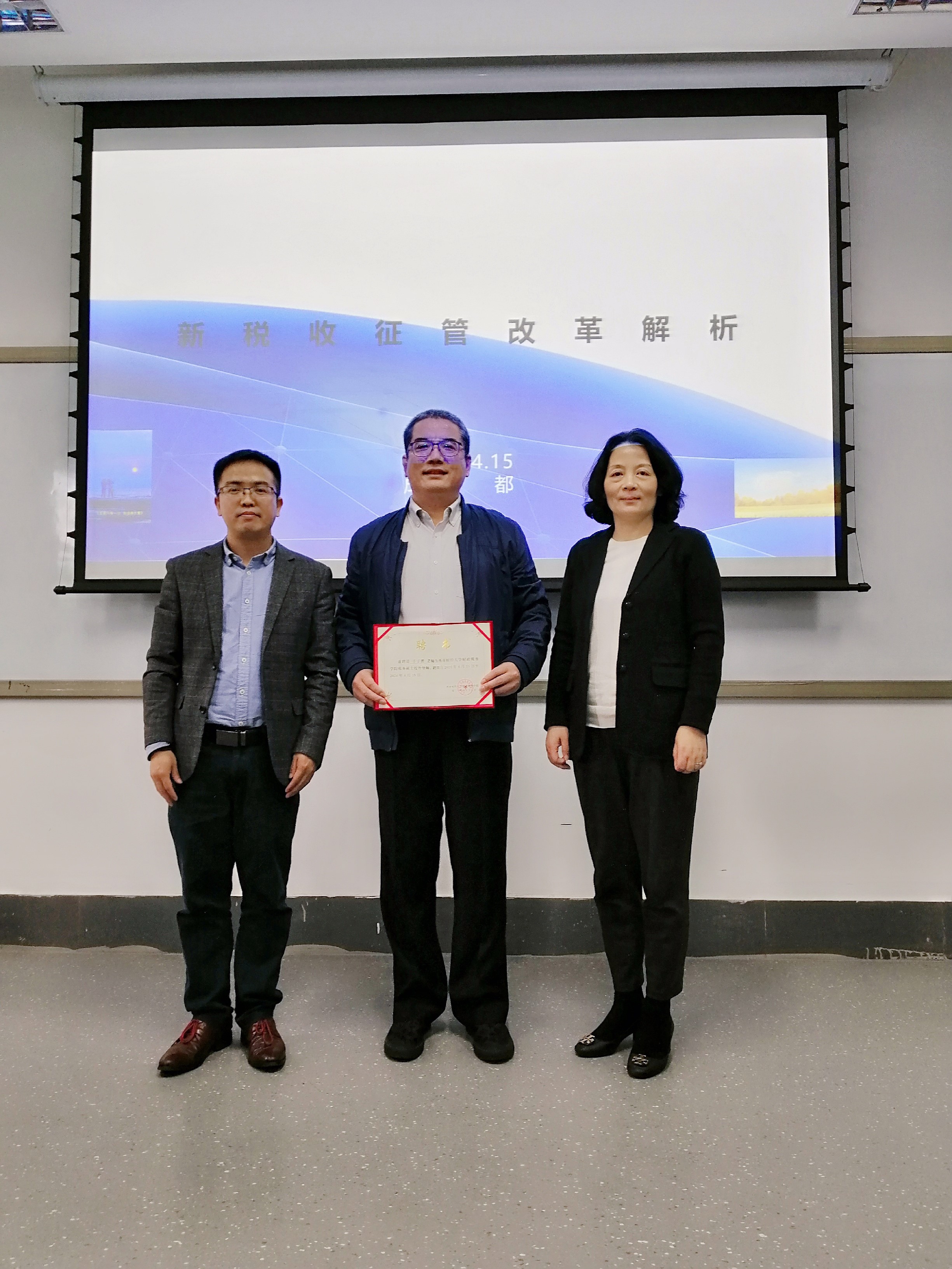 2021年4月15日下午,公司在光华校区光华裙楼2303举行“新税收征管改革解析”讲座,由国家税务总局征管科技司原二级巡视员于子胜主讲,太阳成集团tyc234cc经理刘蓉教授、副经理李建军教授、周克清教授、费茂清副教授、张慧英副教授、黄健教授等出席讲座,讲座由太阳成集团tyc234cc副经理李建军教授主持。