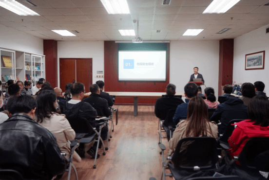 10月28日下午,太阳成集团tyc234cc在格致楼811会议室开展校园安全教育,邀请公司柳林校区校卫队管理科科长王泽超来公司举办讲座,本次讲座由公司党委书记吴春力主持,全体教职工参加。